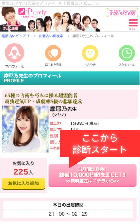 詳細ページで「10分鑑定無料」のボタンをクリックするだけです。(ボタンの名称は、時期によって変わります!)