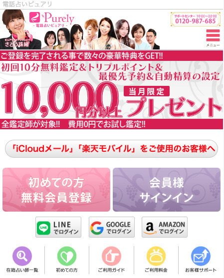 *ピュアリには、「人生」「恋愛成就」「未来透視」「不倫の結末」「複雑な愛」が得意な占い師も大勢います。
