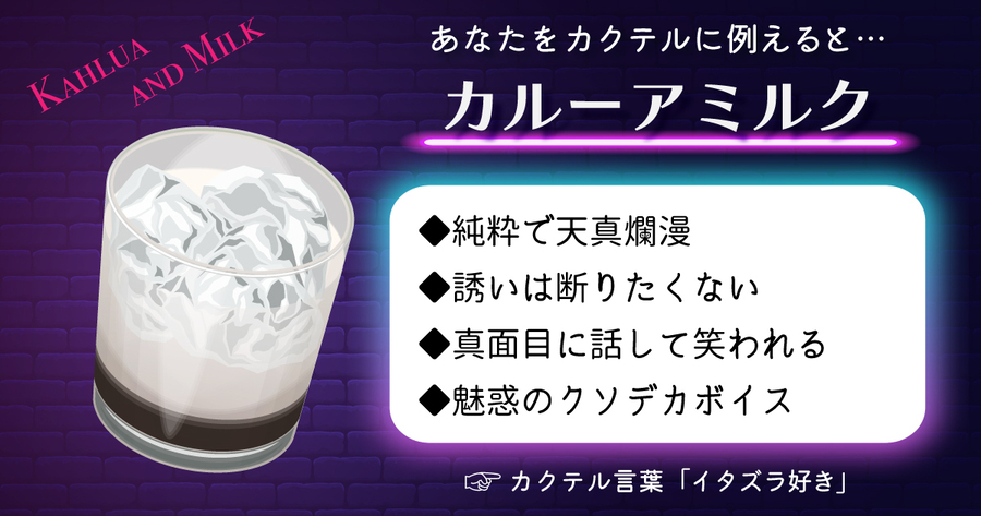 あなたにぴったりのカクテルは【カルーアミルク】です。(解説は下へ)