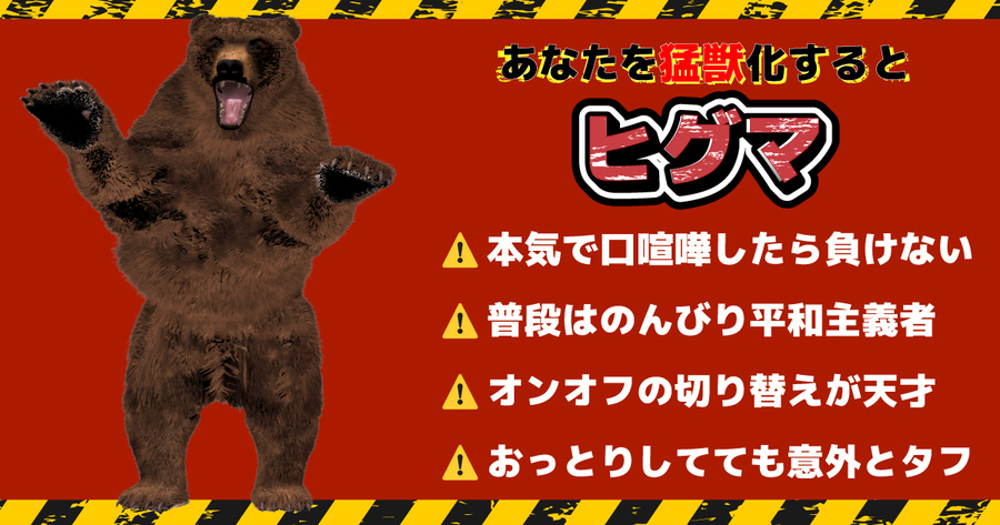 あなたを猛獣化すると【ヒグマ】タイプ!(解説は下へ)