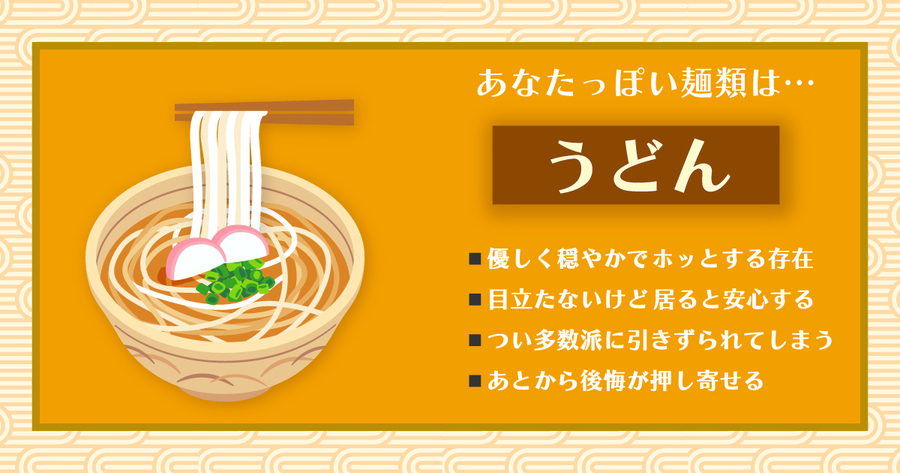 あなたが麺料理なら…【うどん】タイプ!(解説は下へ)