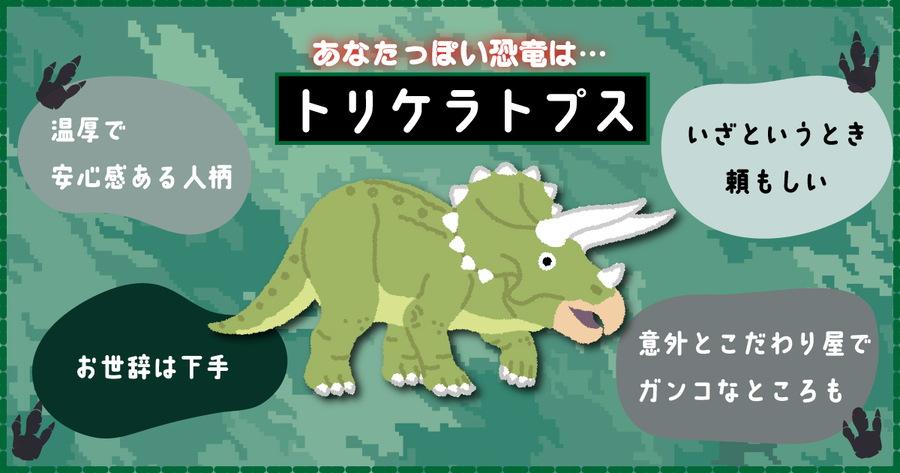 あなたが恐竜なら、誠実で仲間思いの【トリケラトプス】!(解説は下へ)