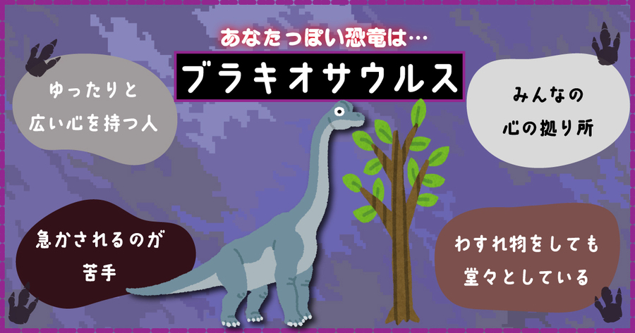 あなたが恐竜なら、穏やかで大らかな【ブラキオサウルス】!(解説は下へ)