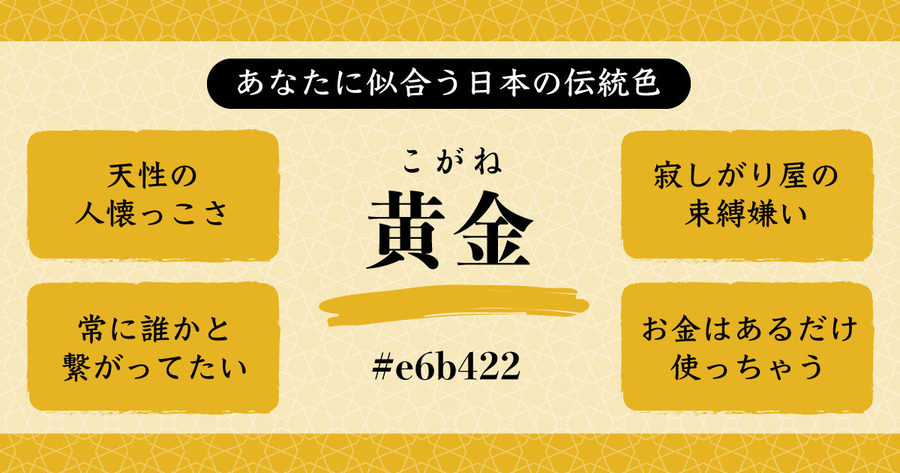 あなたを伝統色で表すなら【黄金(こがね)】です。(解説は下へ)