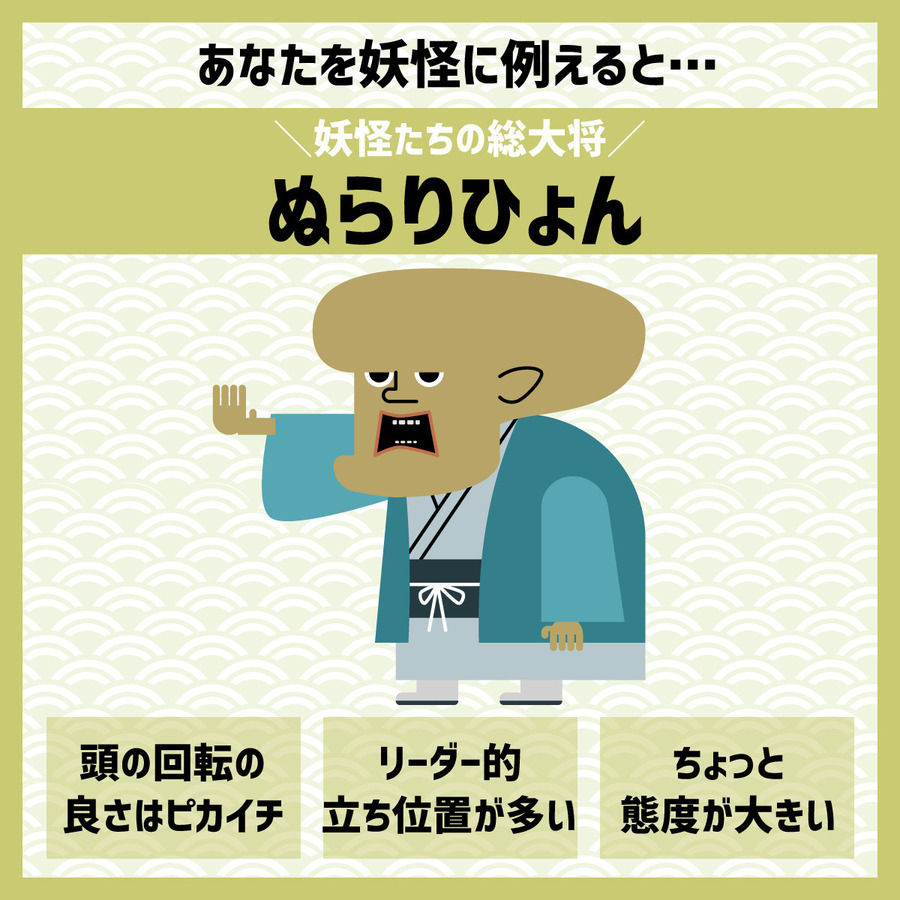 妖怪たちの総大将といわれるぬらりひょんのように、リーダー的立ち位置におかれることも多いのでは?