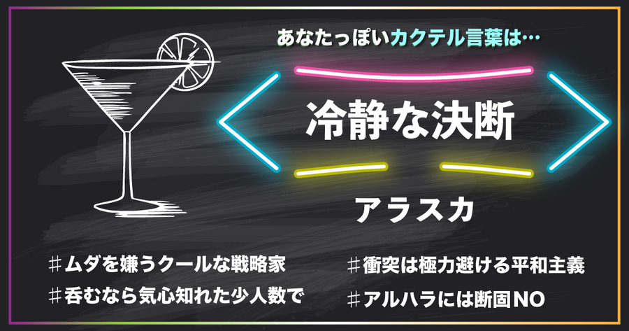 あなたっぽいカクテル言葉は【アラスカ「冷静な決断」】!(解説は下へ)