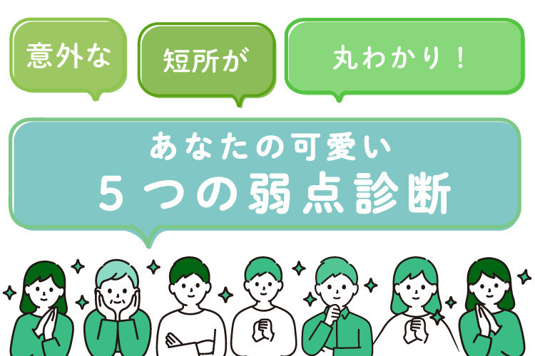 あなたは、自分の性格をちゃんと理解しているでしょうか。人間誰しも、長所あれば短所あり。「隣の芝は青く見える」とよくいいますが、自分が短所だと思っているところも、他人からは羨ましく思われることもあるものです。では、あなたの「かわいらしい弱点」を5つあげるなら?案外、意外な個性が隠れていたりするかもしれません!