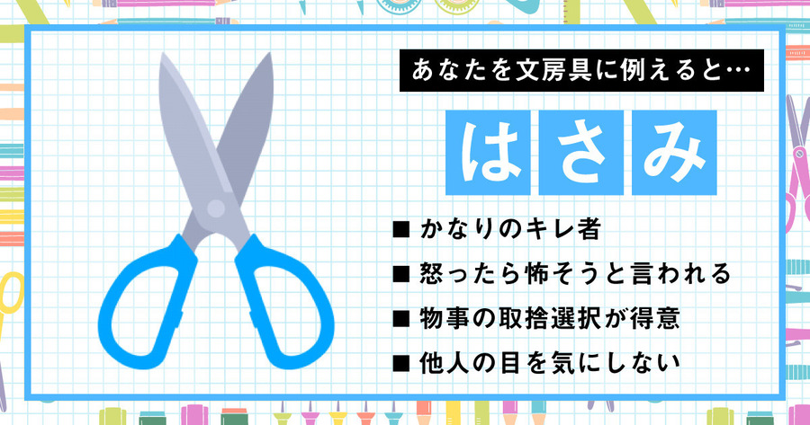 あなたを文房具に例えると…【はさみ】です!(解説は下へ)