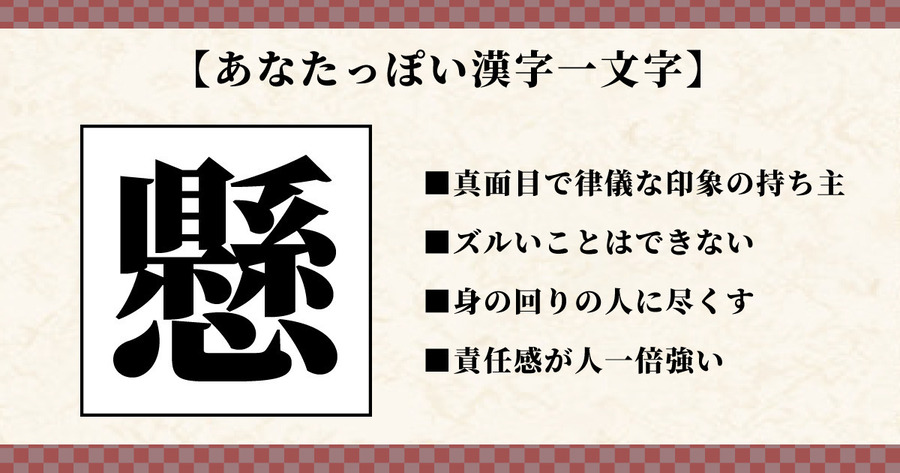 真面目で律儀な印象のあるあなたにピッタリなのは、【懸】の漢字。