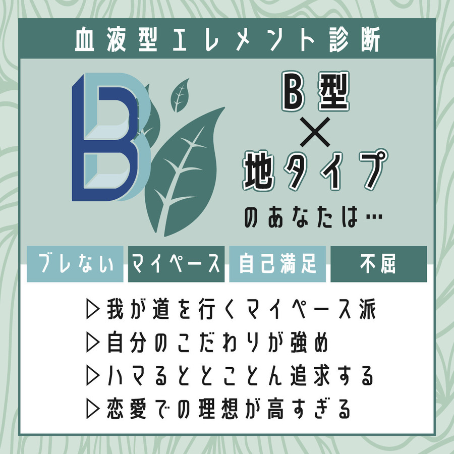 あなたのタイプは【B型×地のエレメント】です!(解説は下へ)