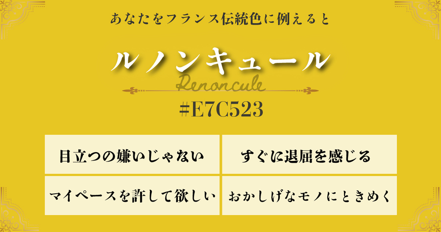 あなたをフランス伝統色で表すなら【ルノンキュール】です。(解説は下へ)