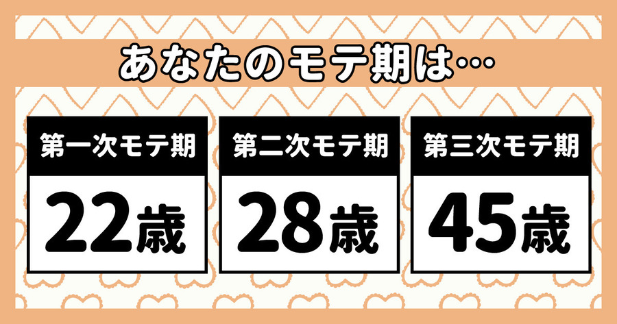 あなたに訪れる3回のモテ期は…【22歳】【28歳】【45歳】です。(解説は下へ)