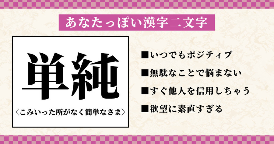 楽天家で陽気なあなたを二文字で表すなら、この漢字です!